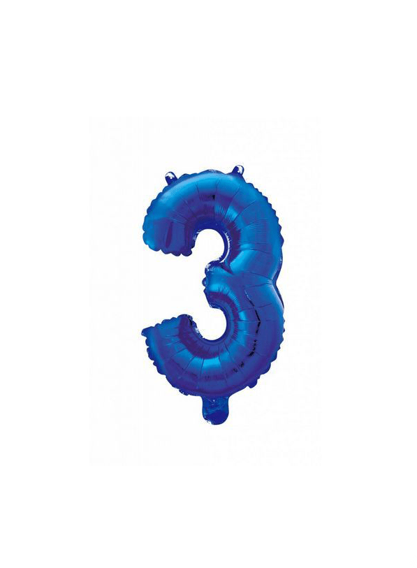 Folienballon Figur 3 Blau 41cm mit Strohhalm