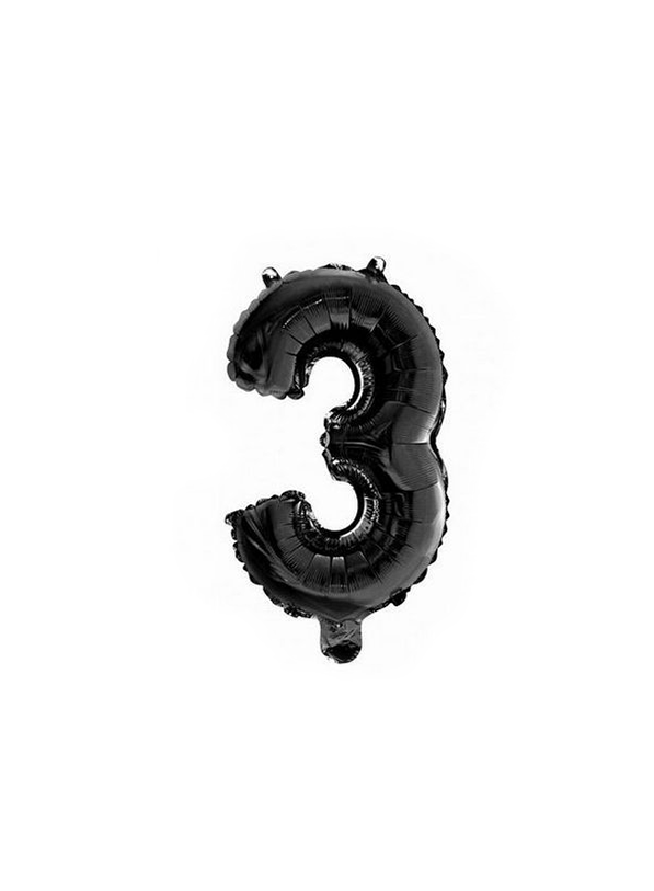 Folienballon Figur 3 Schwarz 41cm mit Strohhalm