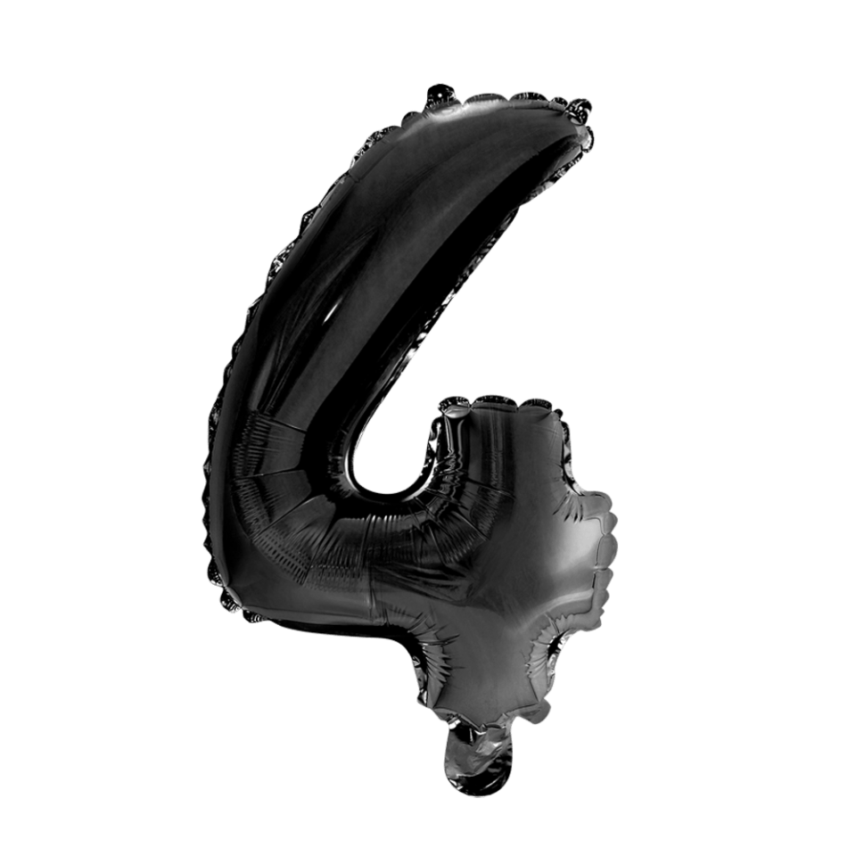 Folienballon Figur 4 Schwarz 41cm mit Strohhalm