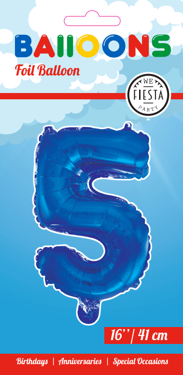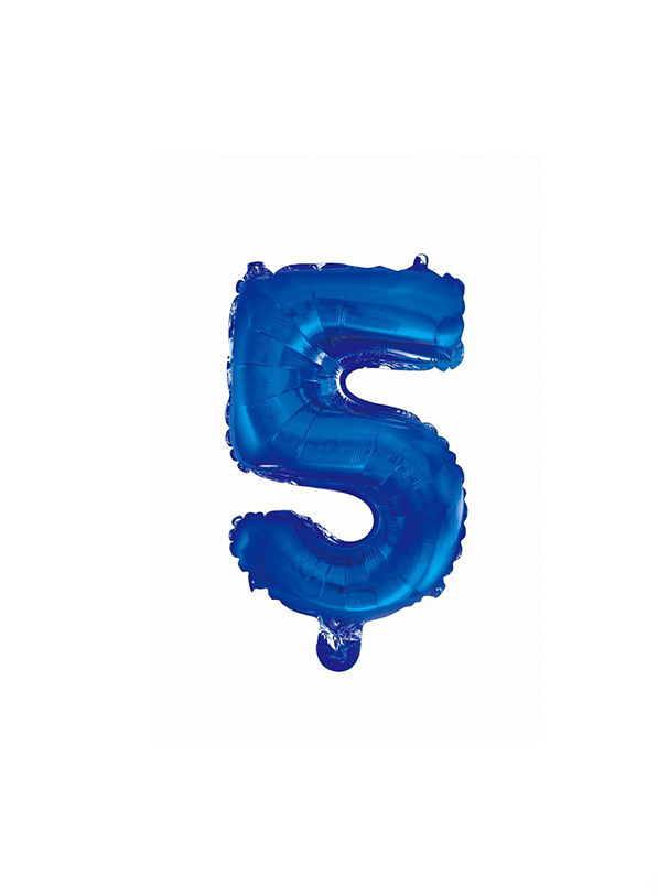 Folienballon Figur 5 Blau 41cm mit Strohhalm