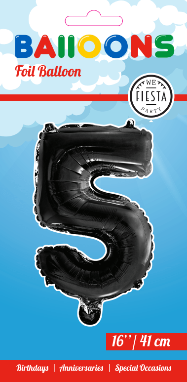 Verpackungsinhalt:Folienballon Figur 5 Schwarz 41cm mit Strohhalm