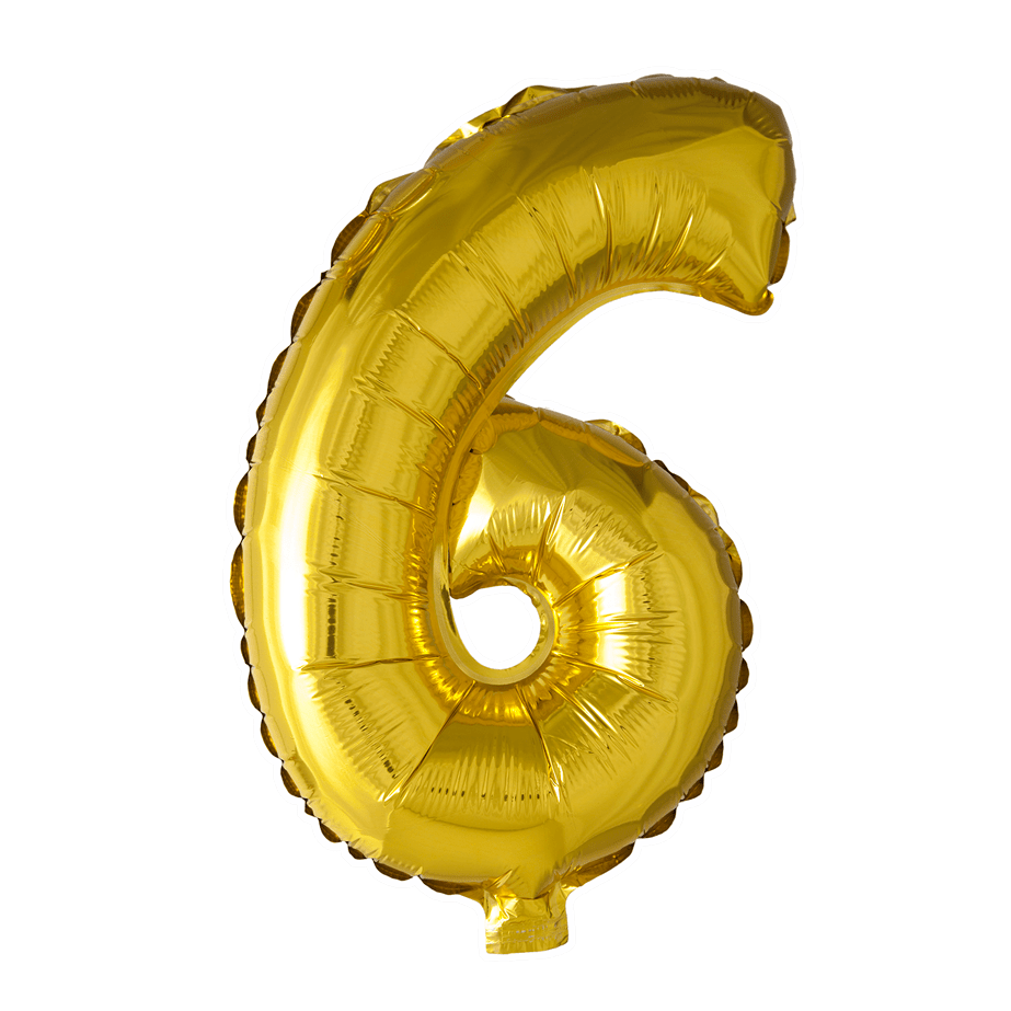 Folienballon Figur 6 Gold 41cm mit Strohhalm