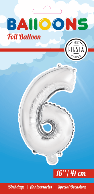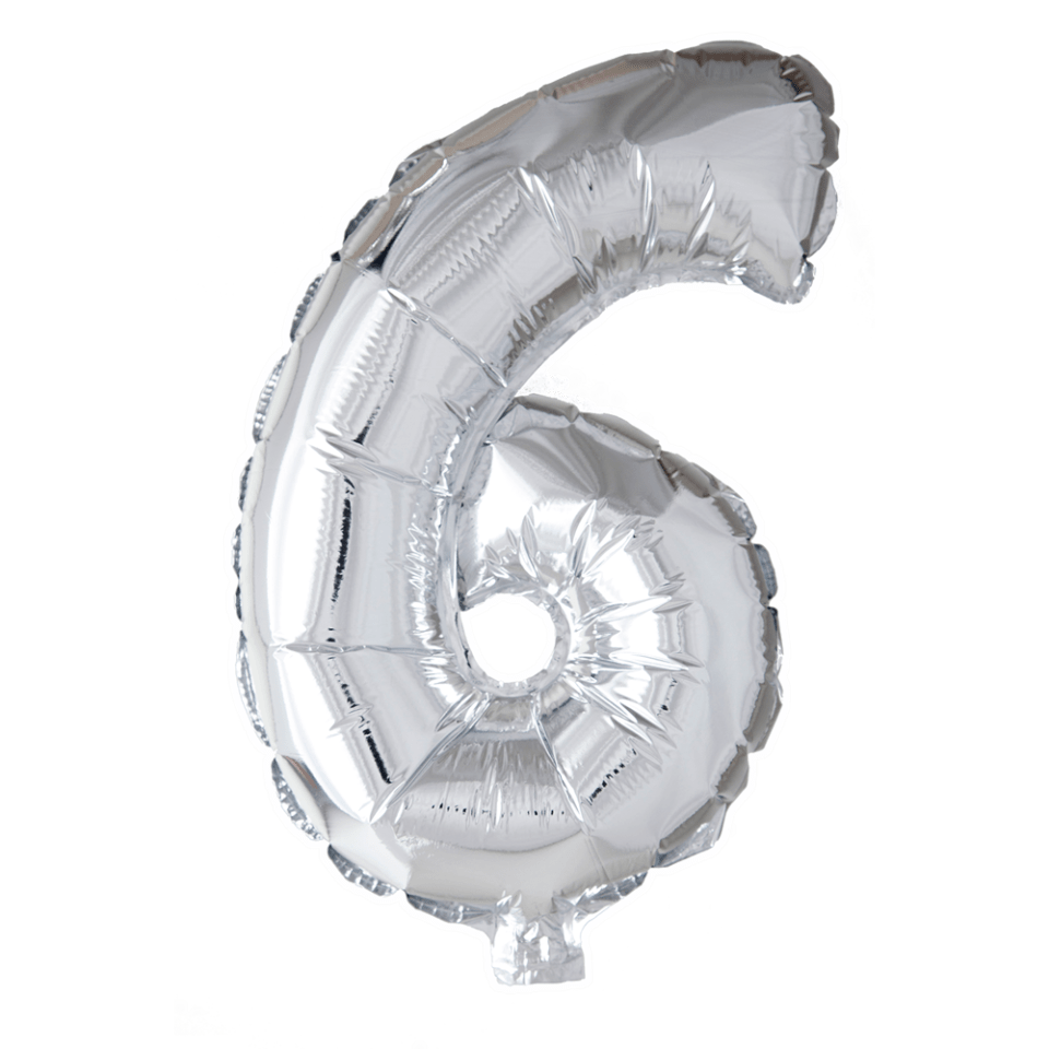 Folienballon Figur 6 Silber 41cm mit Strohhalm