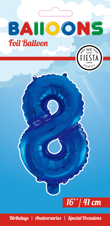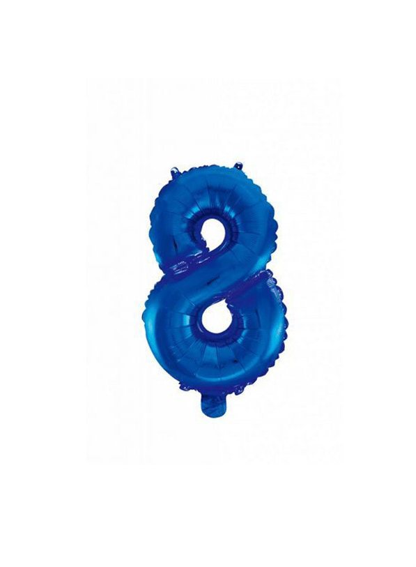 Folienballon Figur 8 Blau 41cm mit Strohhalm