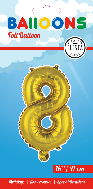 Folienballon Figur 8 Gold 41cm mit Strohhalm