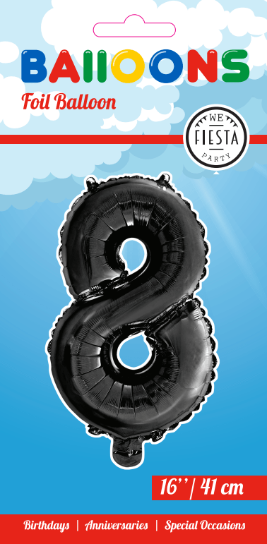 Verpackungsinhalt:Folienballon Figur 8 Schwarz 41cm mit Strohhalm
