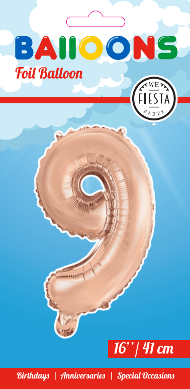 Folienballon Figur 9 Rose Gold 41cm mit Strohhalm