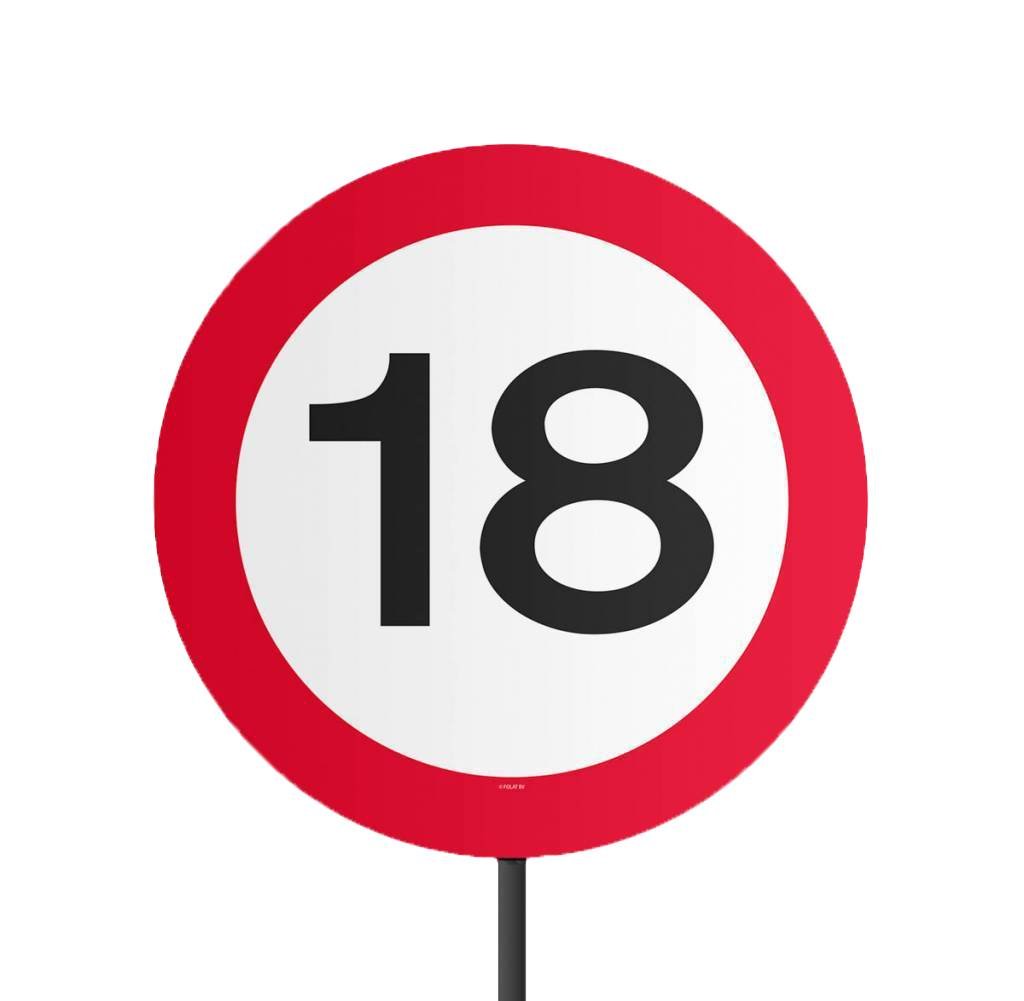 18 Year Traffic Sign Garden Sign. Inhalt: 1 Schild. Kann zum Beispiel bei folgenden Anlässen verwendet werden: Geburtstag, Jahrestag. Durchmesser des Gartenschildes: 26 cm. Länge des Stocks: 48 cm. Der Artikel ist aus Kunststoff hergestellt.