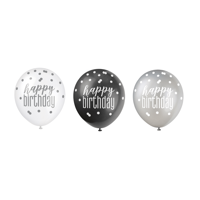Verpackungsinhalt:Geburtstagsballons Happy Birthday Dots Schwarz 30cm 6pcs