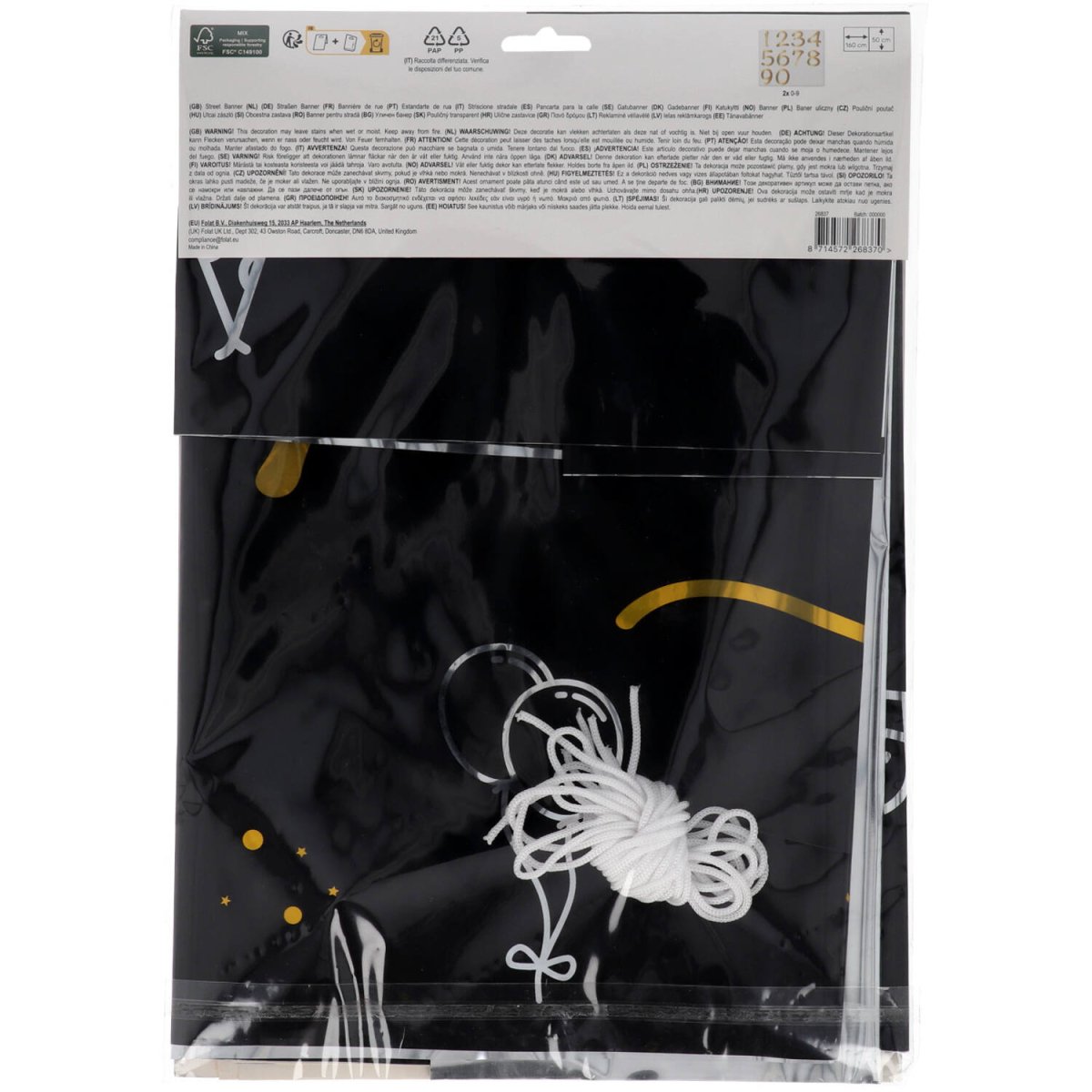 Es gibt einen Geburtstag! Straßenbanner - Shining Glam - 160 x 50 cm. Inhalt: 1 Straßenbanner. Kann zum Beispiel bei folgenden Partys/Partyanlässen verwendet werden: Geburtstag. Mit diesem Straßenbanner weiß die ganze Nachbarschaft, dass jemand Geburtstag hat. Auf dem Banner sind die Worte "HAPPY" und "BIRTHDAY" in glänzendem Gold gedruckt, umgeben von Party-Symbolen in glänzendem Silber. Das Alter kann mit den mitgelieferten goldglänzenden Zahlenaufklebern zwischen die Worte geklebt werden: 2x die Zahlen 0 bis 9 von 14,5 cm Höhe. An den vier Ecken befindet sich eine Metallniete. 4 weiße Polyesterschnüre von je 1 Meter Länge sind im Lieferumfang enthalten. Diese Hängedekoration gehört zu der Shining Glam Kollektion von