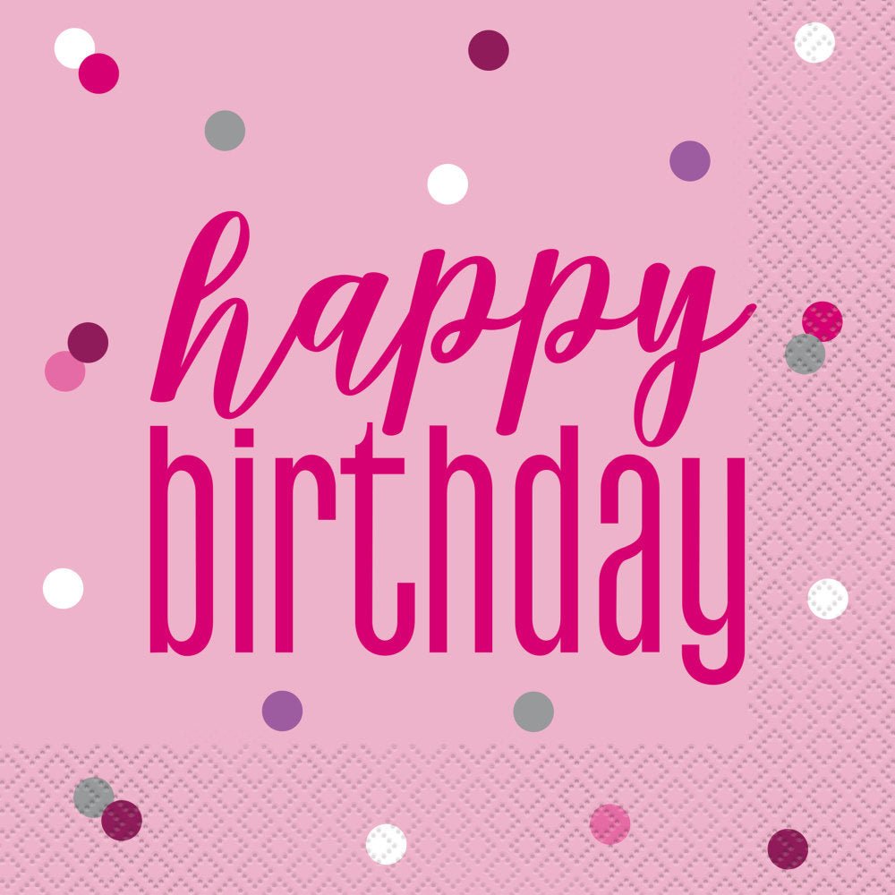 Geburtstagsservietten Happy Birthday Rosa 33cm 16Stück