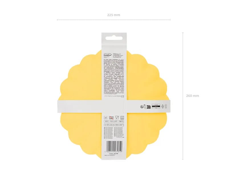 Beschreibung Bewertungen Über dieses Produkt Verpackungsinhalt: Kunststoffteller RüscheGröße: ca. 22 x 22 cm.Anzahl: 4 StückFarbe: gelbWiederverwendbar Trustpilot