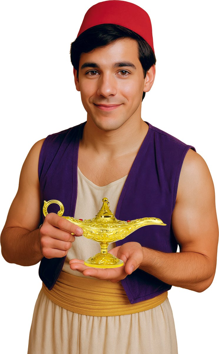 Lass deine Fantasie zum Leben erwachen mit dieser Geisterlampe, die von Aladins Lampe inspiriert ist. Sie ist aus strapazierfähigem PVC und perfekt für Kostümpartys, thematische Dekorationen oder als Zubehör für Rollenspiele. Ideal für kleine und große Abenteurer, die von magischen Welten und wahr werdenden Wünschen träumen.