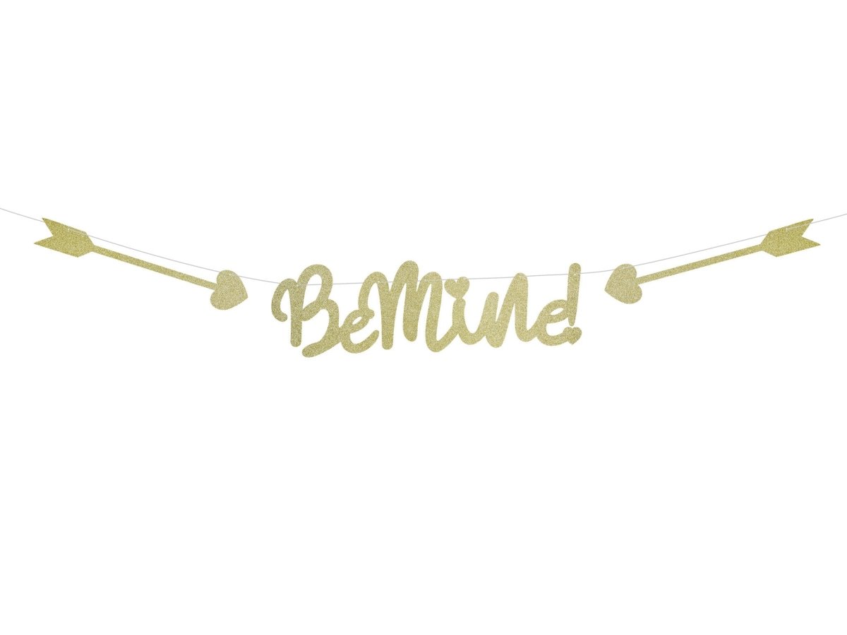 Inhalt: Banner Sweet Love - Be mine !, glitzerndes Gold, do it yourself, Set beinhaltet Aufschrift Be mine !, 2 Pfeile und ca. 2m Angelschnur, Maße nach dem Zusammenbau: Höhe ca. 11,5cm, Länge ca. 90cm.