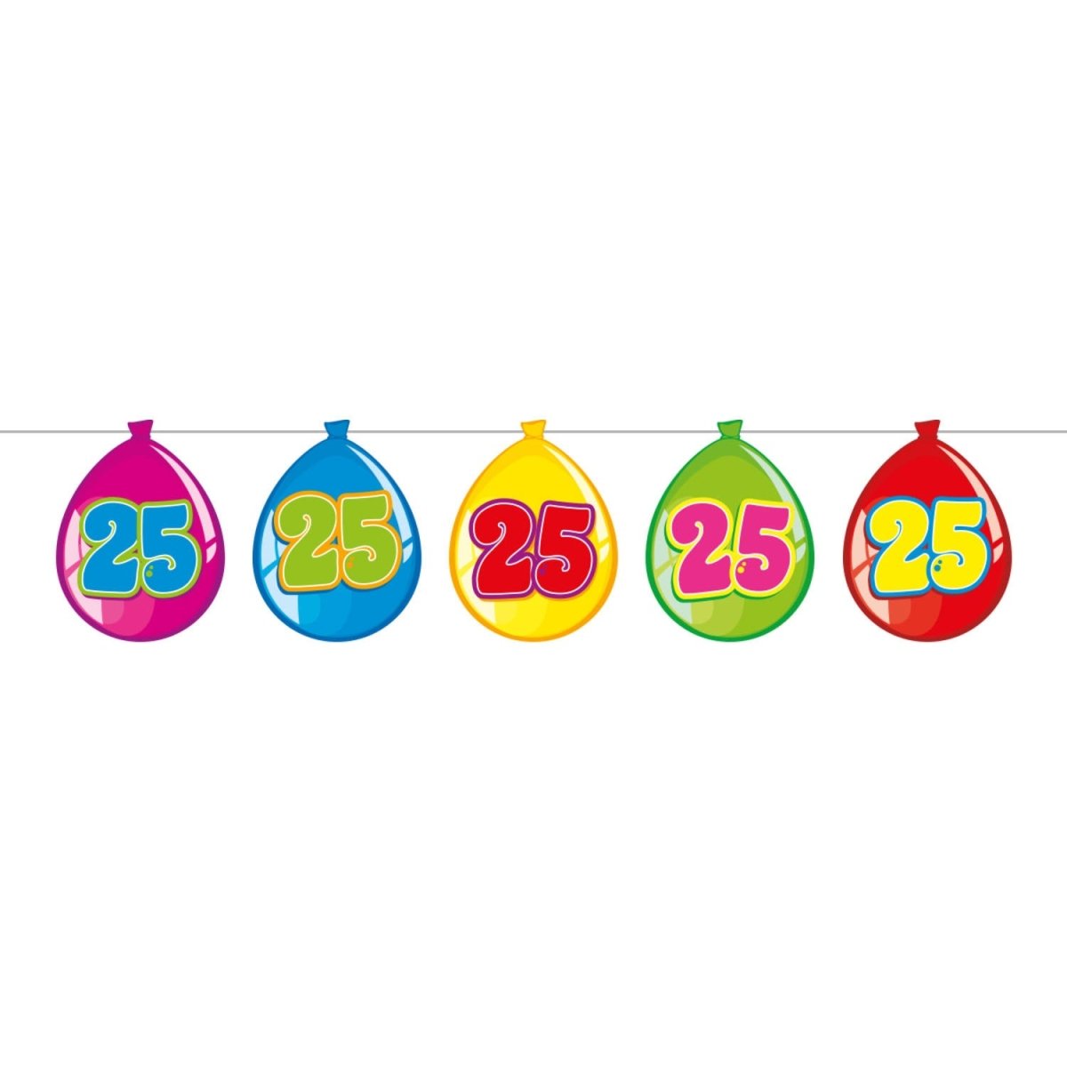 25 Jahre Geburtstagsballongirlande - 10 Meter. Inhalt: 1 Fahnenschnur. Farbe: Mehrfarbig. Zum Beispiel zur Verwendung bei folgenden Anlässen: Geburtstag, Jubiläum. Diese Girlande ist 10 Meter lang. Der Artikel ist aus Pappe hergestellt.