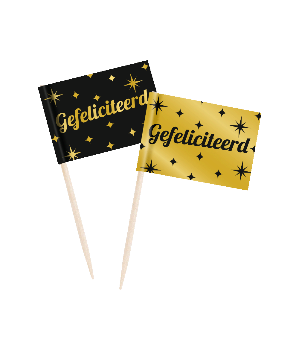 Glückwunsch Cocktail Picks Schwarz Gold 6,5cm 50Stück