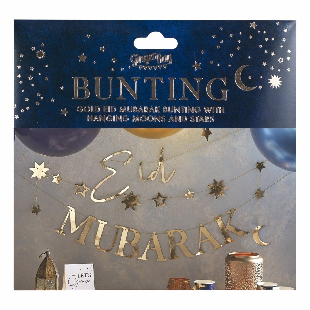 Goldene Ramadan Buchstabengirlande Eid Mubarak 1,5 m 3 Stk