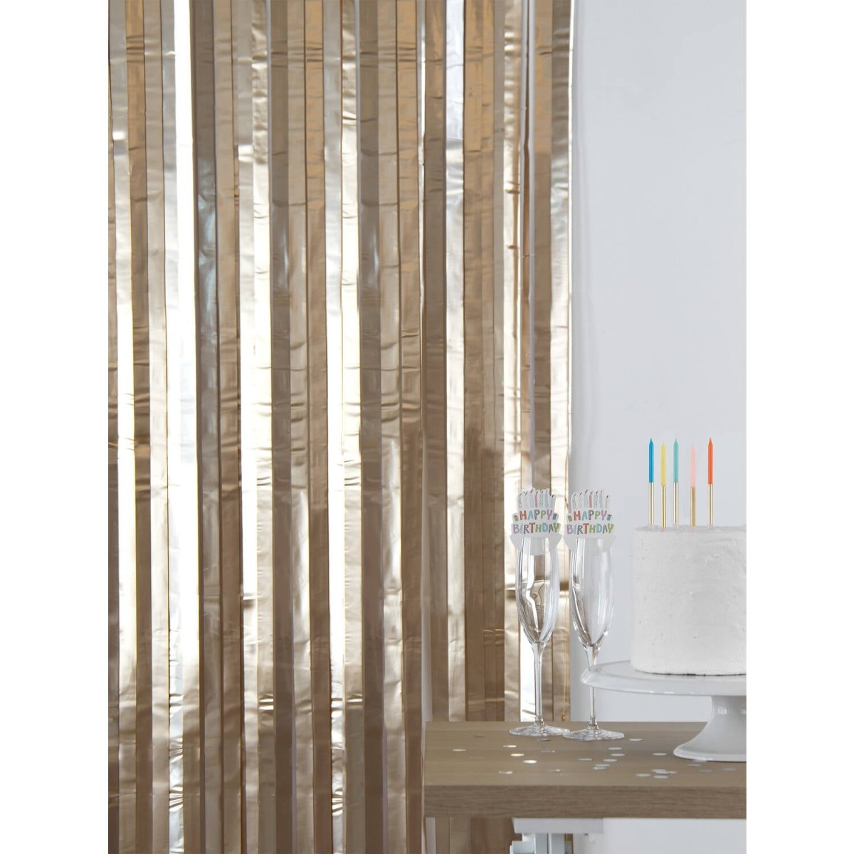 Für eine schicke Atmosphäre. Partyvorhang - Matt Gold - 1 x 2 m. Inhalt: 1 Partyvorhang. Kann zum Beispiel bei folgenden Anlässen verwendet werden: Geburtstag, Mottoparty. Ein schicker Partyvorhang mit breiten Goldstreifen von 2,5 cm Breite. Schön als Türvorhang, aber auch sehr gut als Hintergrund für geschmackvolle Fotos geeignet. Dank der praktischen Klebeleiste lässt sich dieser Partyvorhang leicht aufhängen. Dieser Artikel ist aus Folie hergestellt.