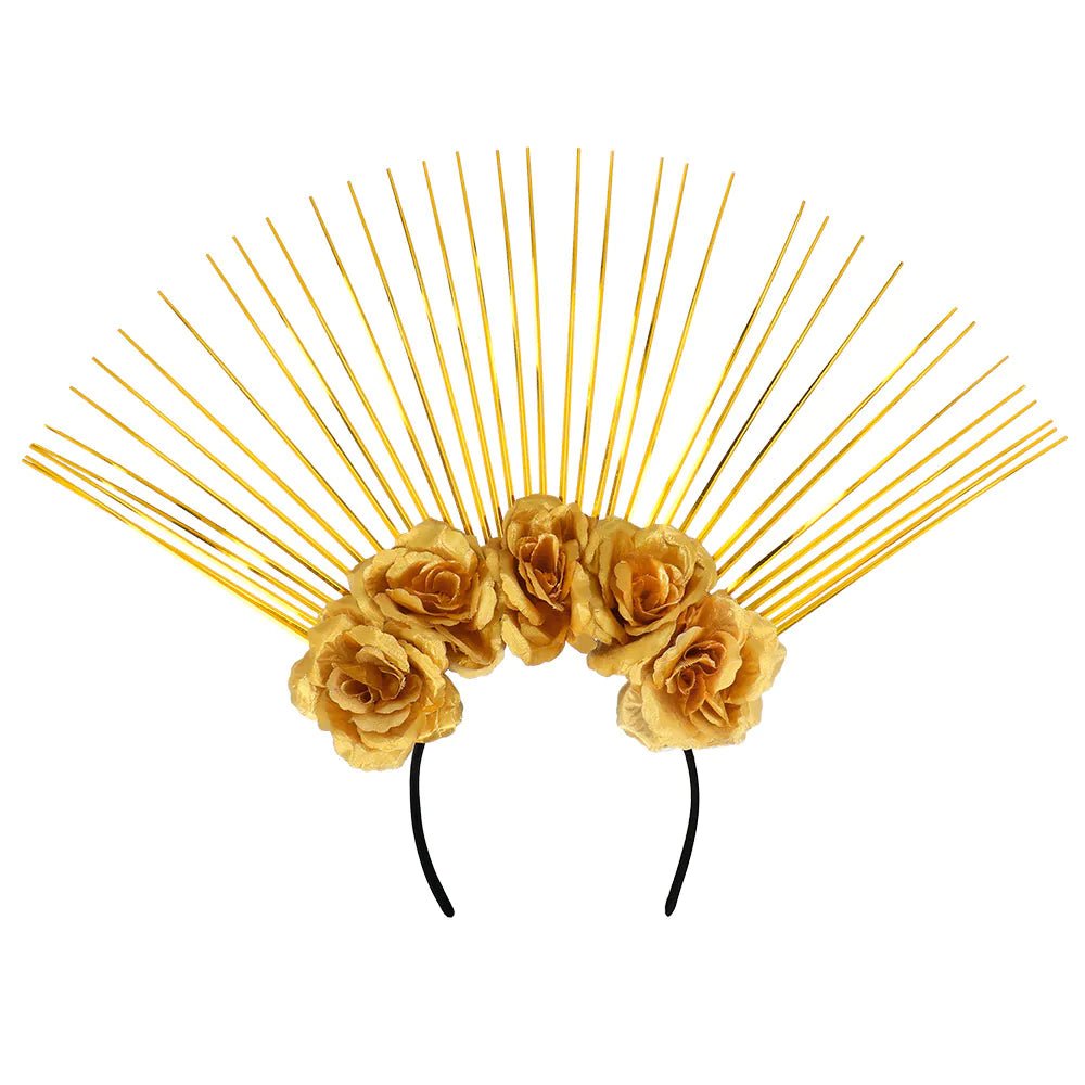 Diese wunderschöne Nova Halo Krone ist ein einzigartiges Diadem mit großen goldenen Blumen, das ein Festival- oder Hochzeitsoutfit zum Strahlen bringt und dem Look einen Boho-Touch verleiht. Außerdem ist dieses schöne Halo-Kronendiadem auch ein einzigartiges Accessoire, um ein Kostüm als Göttin oder Engel für Karneval oder ein Cosplay-Event zu vervollständigen.