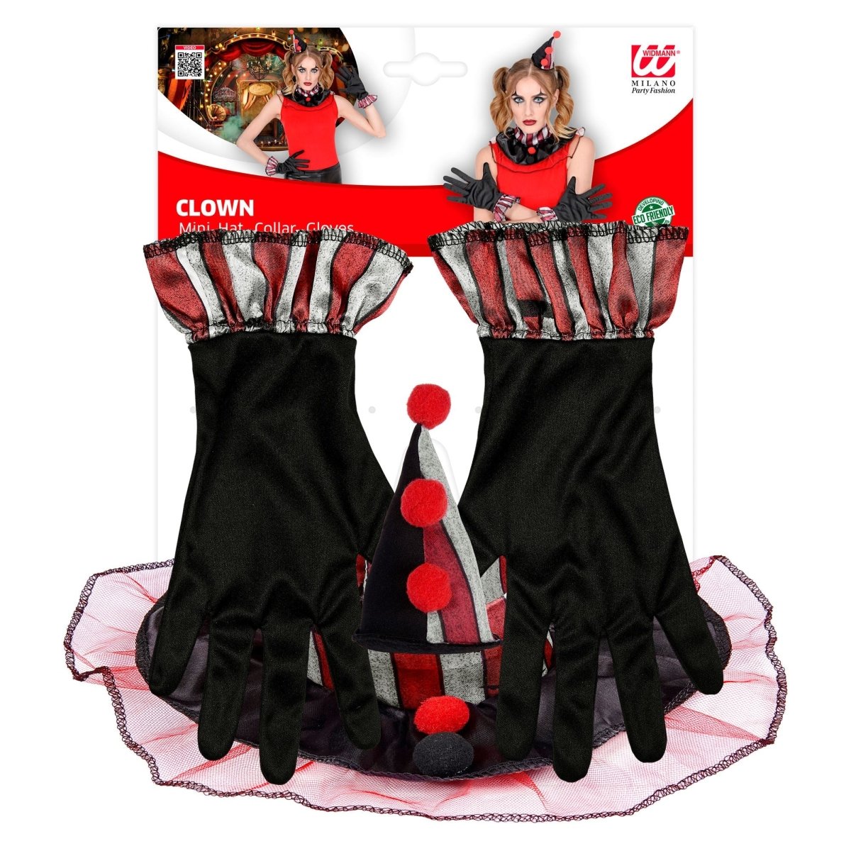Vervollständige dein gruseliges Clownskostüm mit diesem dunklen Accessoire-Set. Perfekt für Halloween, Kostümpartys oder Faschingspartys.