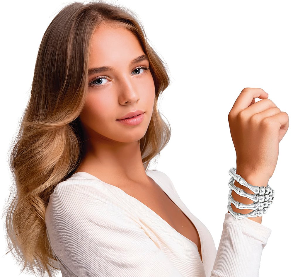 Halloween Armband Silber Skelett Hand