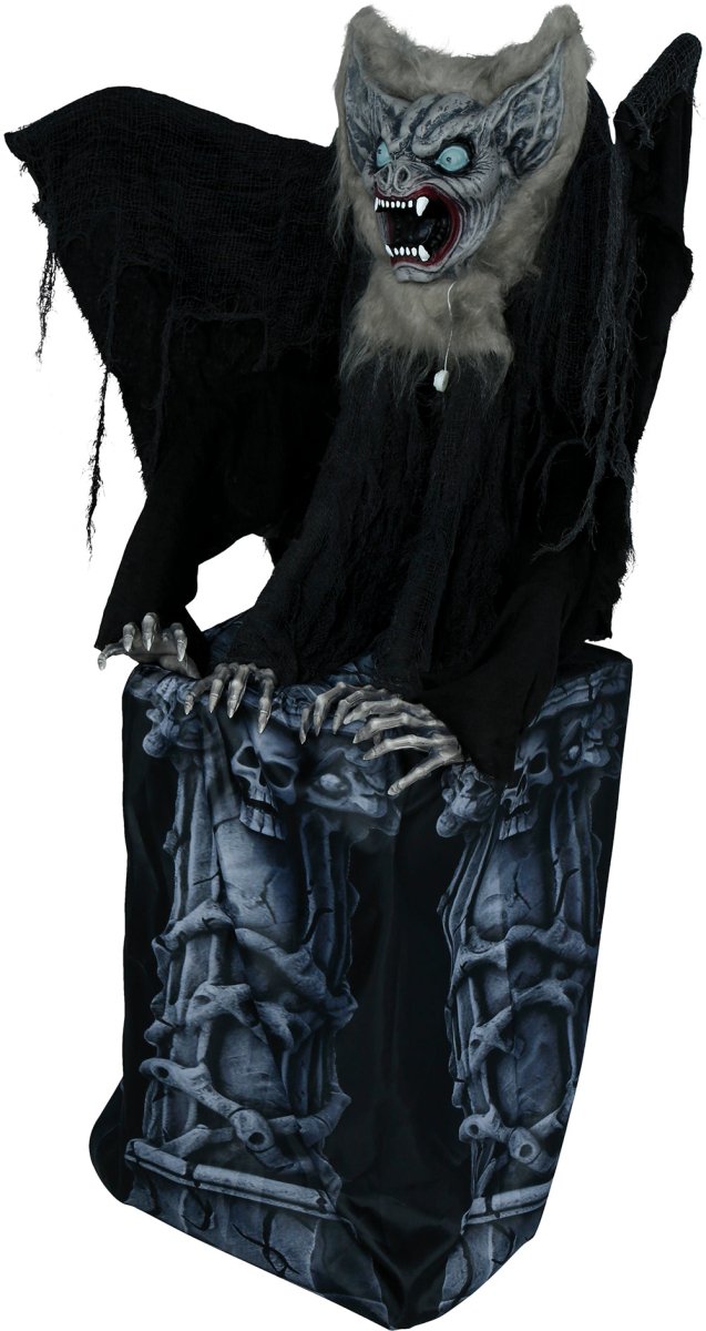 Halloween Dekoration Fledermaus auf Stein beweglich mit Licht und Sound 1,5m