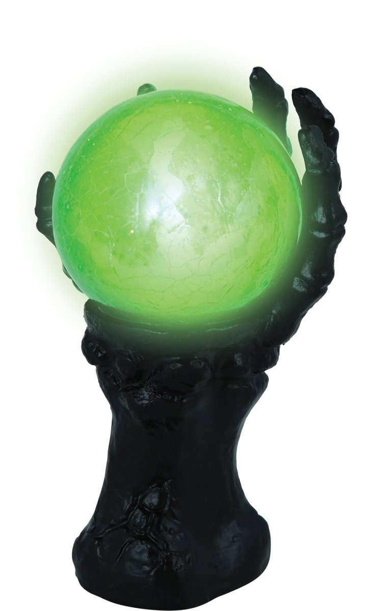 Halloween Deko Hand mit Kristallkugel und Licht 14,5cm
