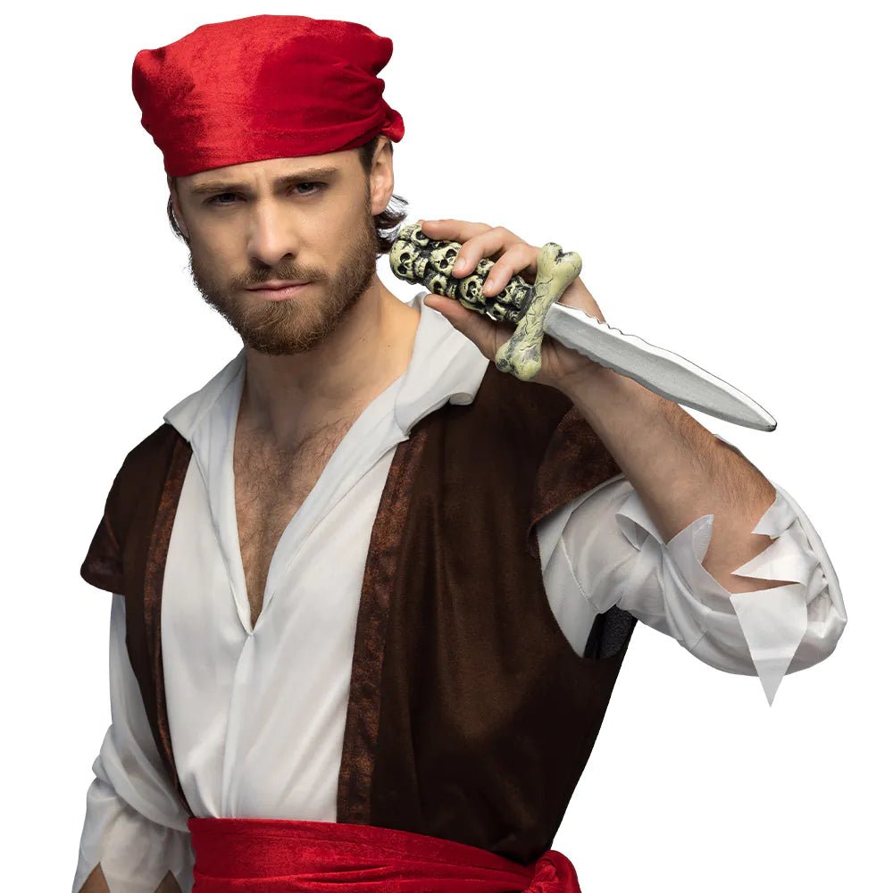 Dieser gruselige Dolch ist ein einzigartiges Accessoire, das perfekt zu einem knallharten Piratenkostüm oder einem dunklen Dämonenkostüm passt. Der Dolch ist 30 cm lang und hat einen detaillierten, mit Totenköpfen verzierten Griff für einen besonders gruseligen Look. Das macht ihn zum perfekten Accessoire für Karneval und Mottopartys sowie für Halloween.