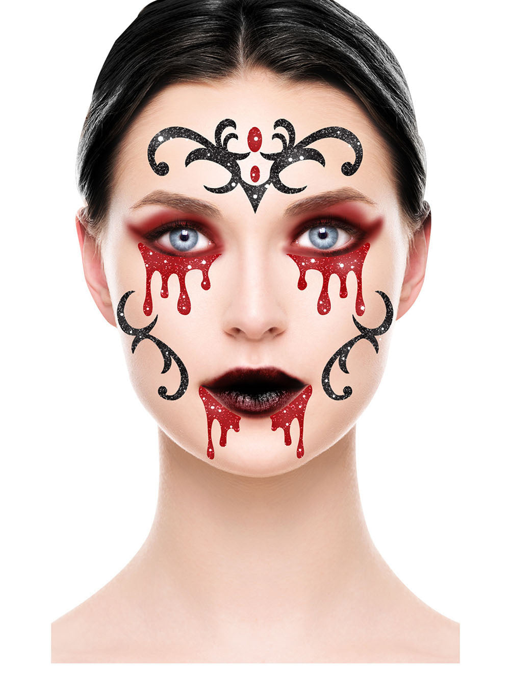 Halloween Gesichtsaufkleber Vampir Glitzer 20cm