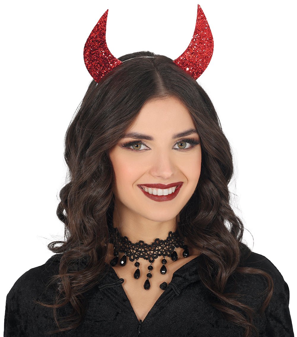 Halloween Haarband Rote Teufelsohren mit Glitzer