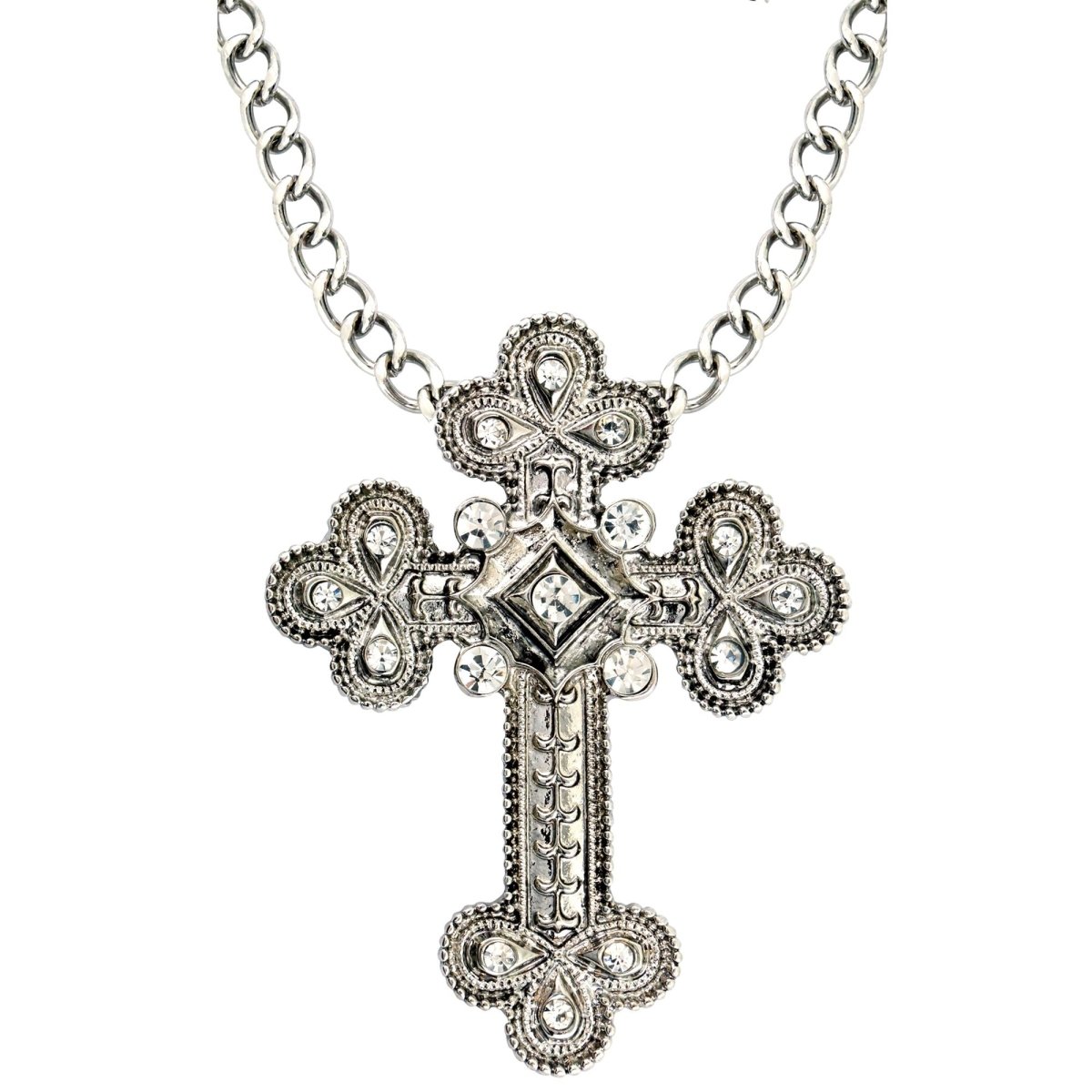 Vervollständige deinen gruseligen oder stilvollen Halloween-Look mit dieser silbernen Halskette mit Kreuz und Strasssteinen. Perfekt als Accessoire für Kostüme, Faschingspartys oder Kostümfeste.