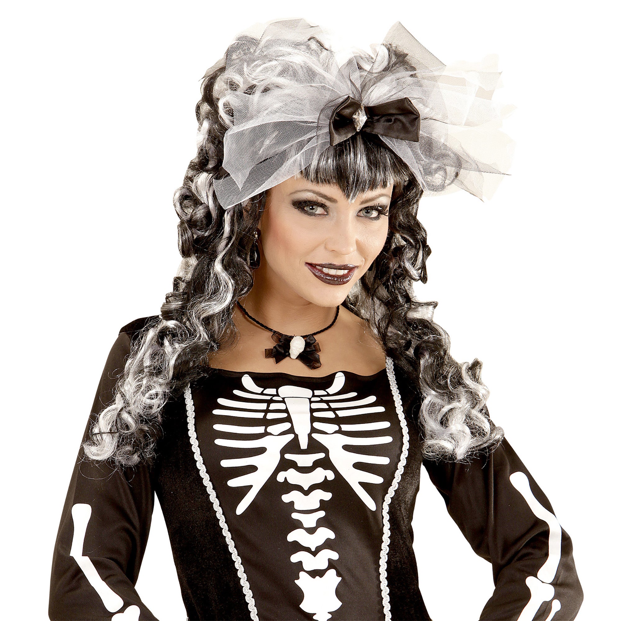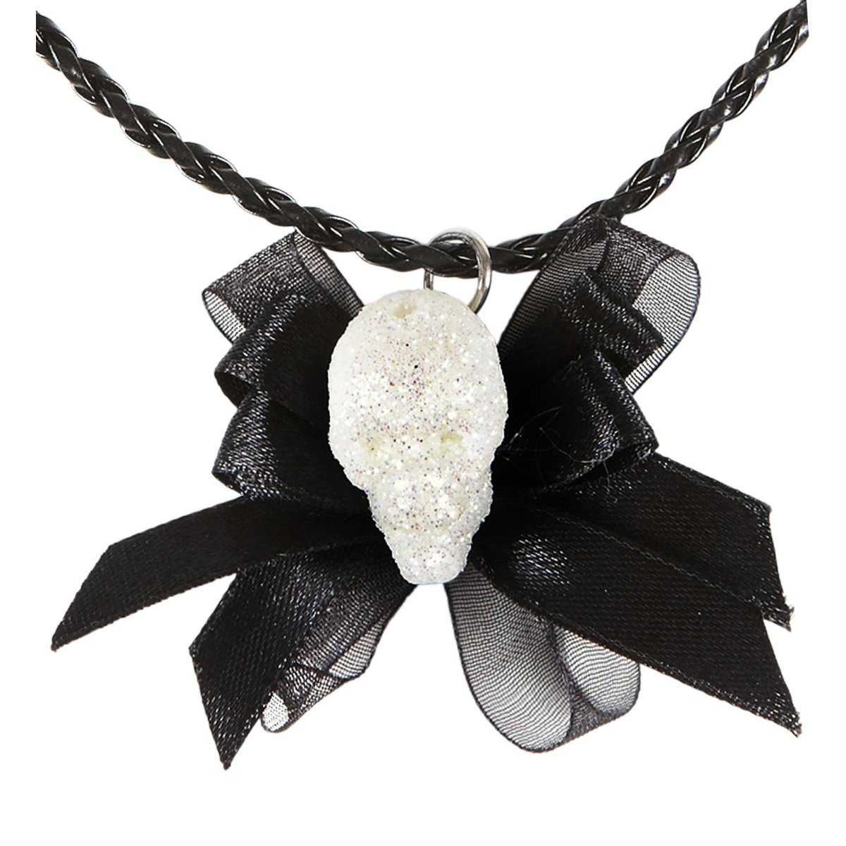 Vervollständige deinen gruseligen oder verspielten Halloween-Look mit dieser Halskette mit Totenkopf und süßer Fliege. Ideal als Accessoire für Kostümpartys, Faschingspartys oder Halloween-Kostüme.