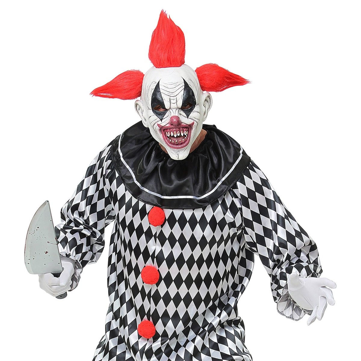 Vervollständige dein gruseliges Halloween-Outfit mit dieser rot-weißen Clownsmaske. Perfekt für Mottopartys, Süßes-oder-Saures oder Kostümpartys, bei denen ein gruseliger Effekt erwünscht ist.