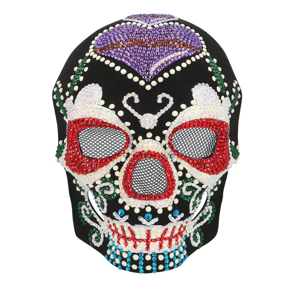 Die detaillierten Verzierungen, glänzenden Steine und leuchtenden Farben machen diese Luxusmaske zu einem echten Hingucker. Das Totenkopfdesign in Kombination mit den schönen Farben macht diese Maske perfekt für das Thema Tag der Toten. Eine stilvolle Ergänzung zu einem Dia de los Muertos-Outfit für Halloween, Mottoparty oder Süßes-oder-Saures.