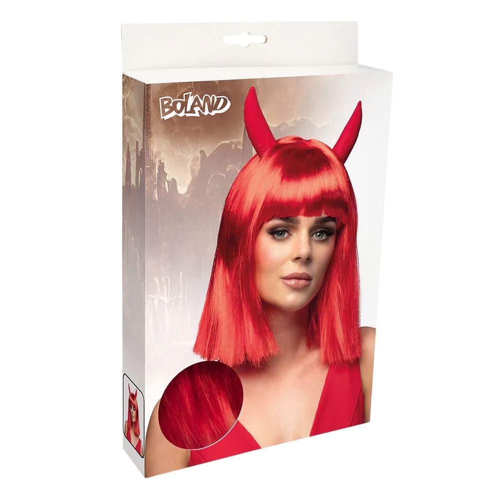 Diese rote Teufelin-Perücke für Damen ist das perfekte Accessoire für ein sexy Teufelskostüm. Die Perücke hat einen langen Bob-Look mit Fransen und hat rote Teufelshörner. Die perfekte Frisur, um auf einer gruseligen Halloween-Party gut auszusehen.