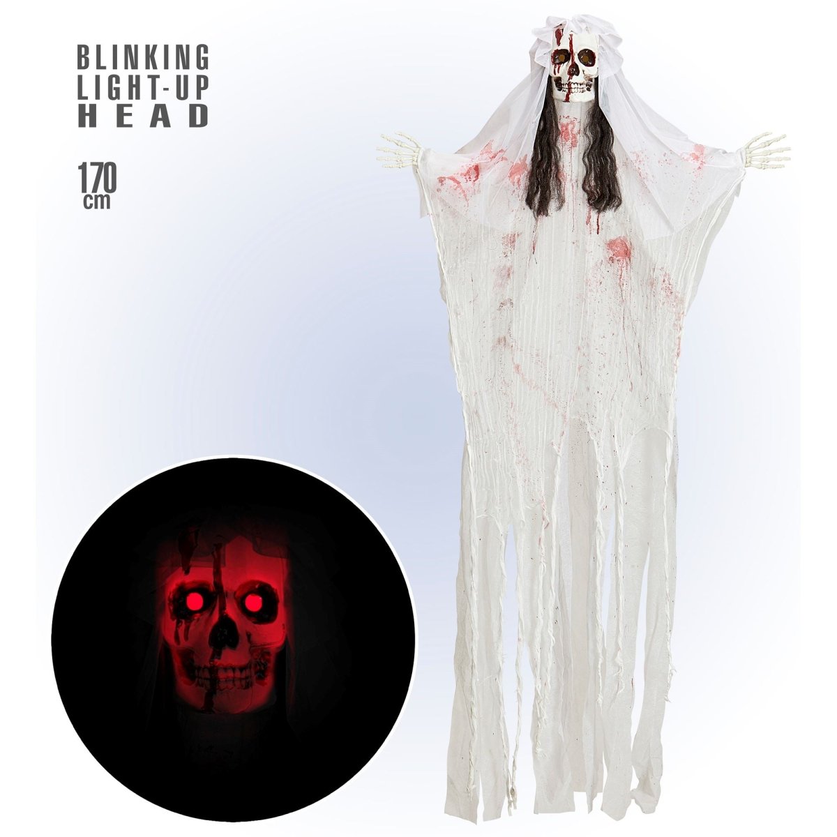 Verleihe deiner Halloween-Party eine gruselige Atmosphäre mit dieser leuchtenden Skelettbraut-Hängedekoration. Ein beeindruckender Artikel, der sofort die Aufmerksamkeit auf sich zieht.
