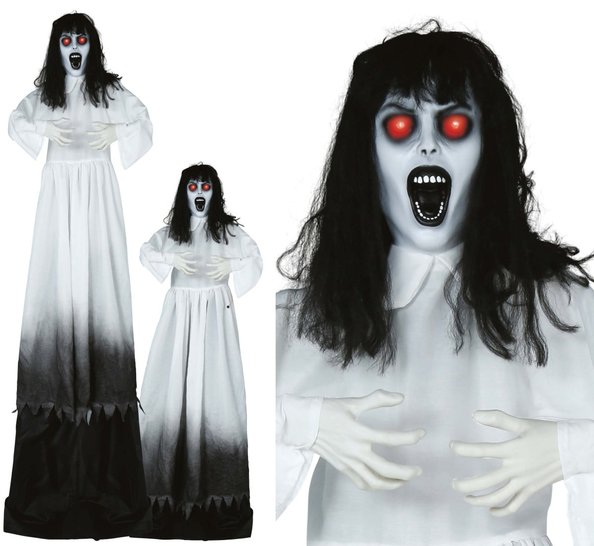 Halloween Puppe Zombie Frau mit Licht, Ton und Bewegung 1,8m