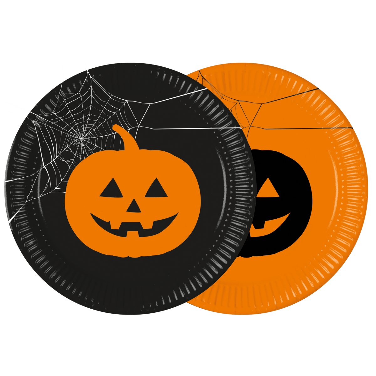 Vervollständige deine Halloween-Party mit diesem Set aus acht Tellern in Schwarz und Orange. Mit einer Größe von 23 cm sind sie ideal für Snacks, Kuchen oder kleine Mahlzeiten. Die robusten Teller sind nicht nur praktisch, sondern tragen auch direkt zur gruseligen und festlichen Atmosphäre bei. Die Packung enthält acht Halloween-Teller in schwarz/orange.