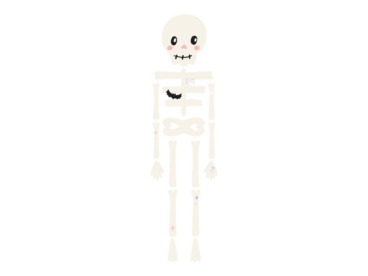 Hängende Dekoration Skelett, Farbenmix, das Produkt enthält eine Schnur und 15 Elemente zum selber zusammenbauen. Höhe zusammengeklappt ca. 110 cm.