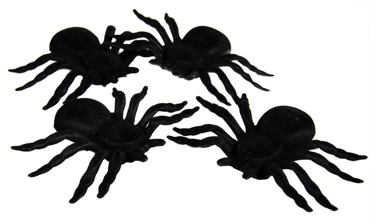 Set aus 4 Spinnen. Inhalt: 4 Spinnen. Kann zum Beispiel bei folgenden Anlässen verwendet werden: Halloween. Die Spinnen sind 7 x 11 x 2 cm groß. Der Artikel ist aus Kunststoff hergestellt.