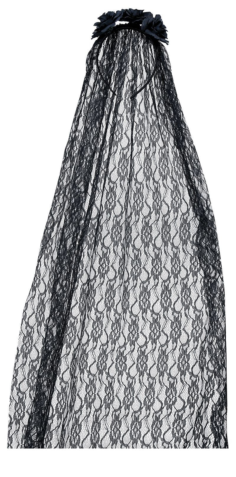 Halloween Tiara Blumen und Schleier Schwarz