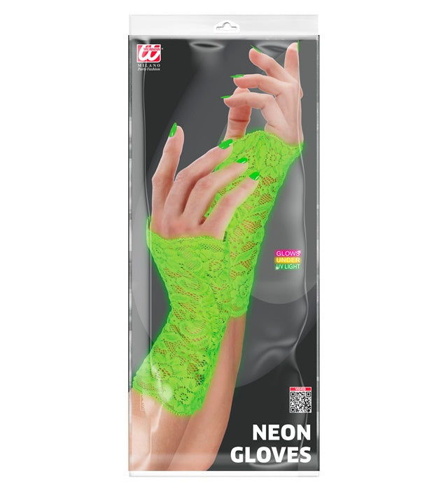 Diese neongrünen Spitzenhandschuhe machen deinen Look komplett.