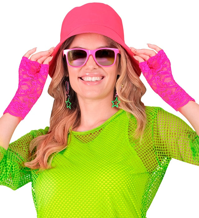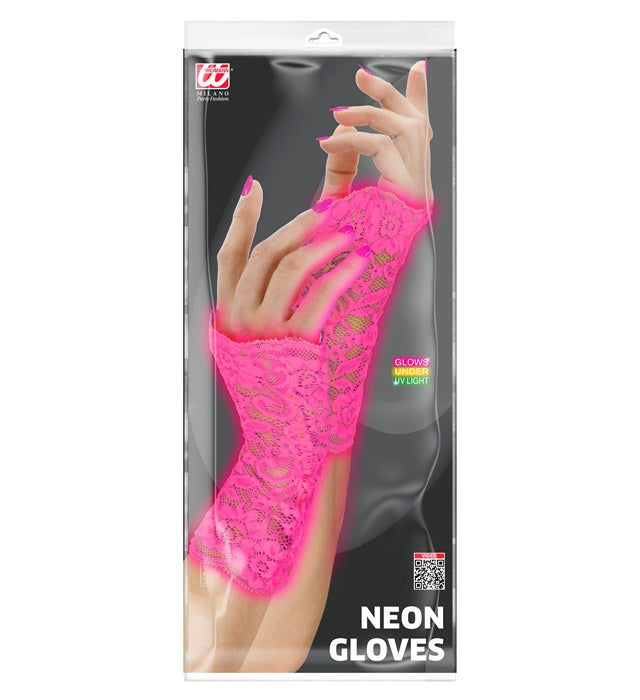 Verleihe deinem Outfit einen fröhlichen und auffälligen Look mit diesen neonpinken Spitzenhandschuhen. Ein perfektes Accessoire, um deinen Look besonders festlich zu machen.