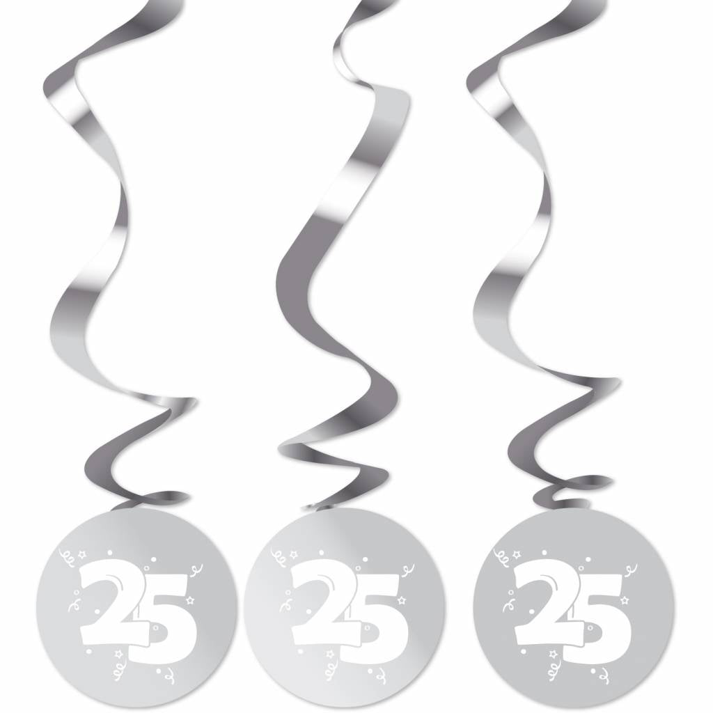 Hängende Dekoration 25 Jahre Silberdekoration 75cm 3Stück