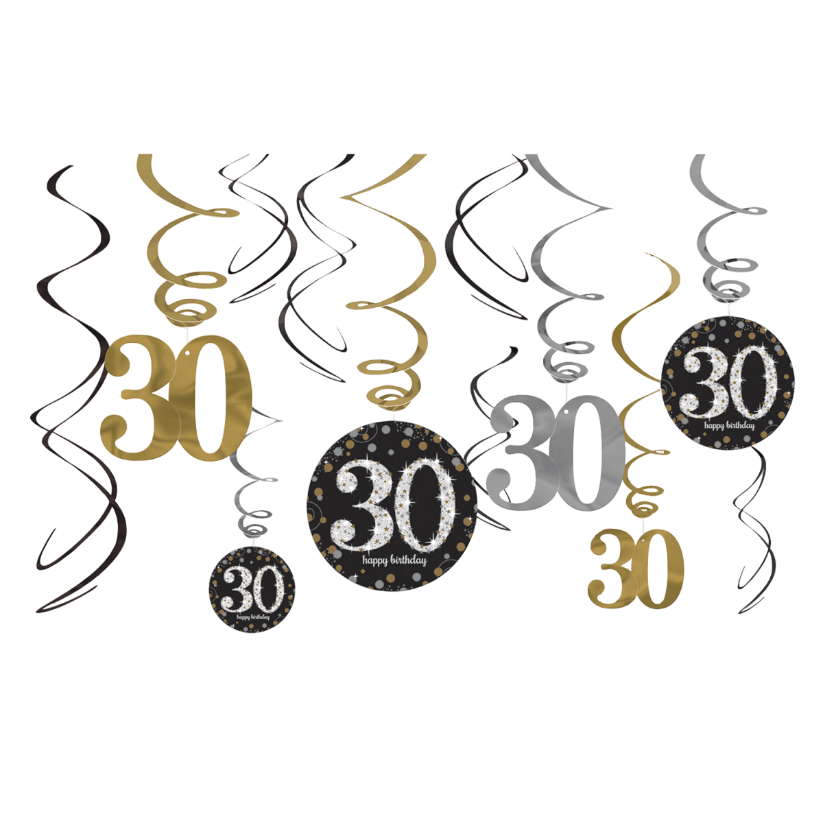 Hängende Dekoration 30 Jahre Happy Birthday 61cm 12Stück