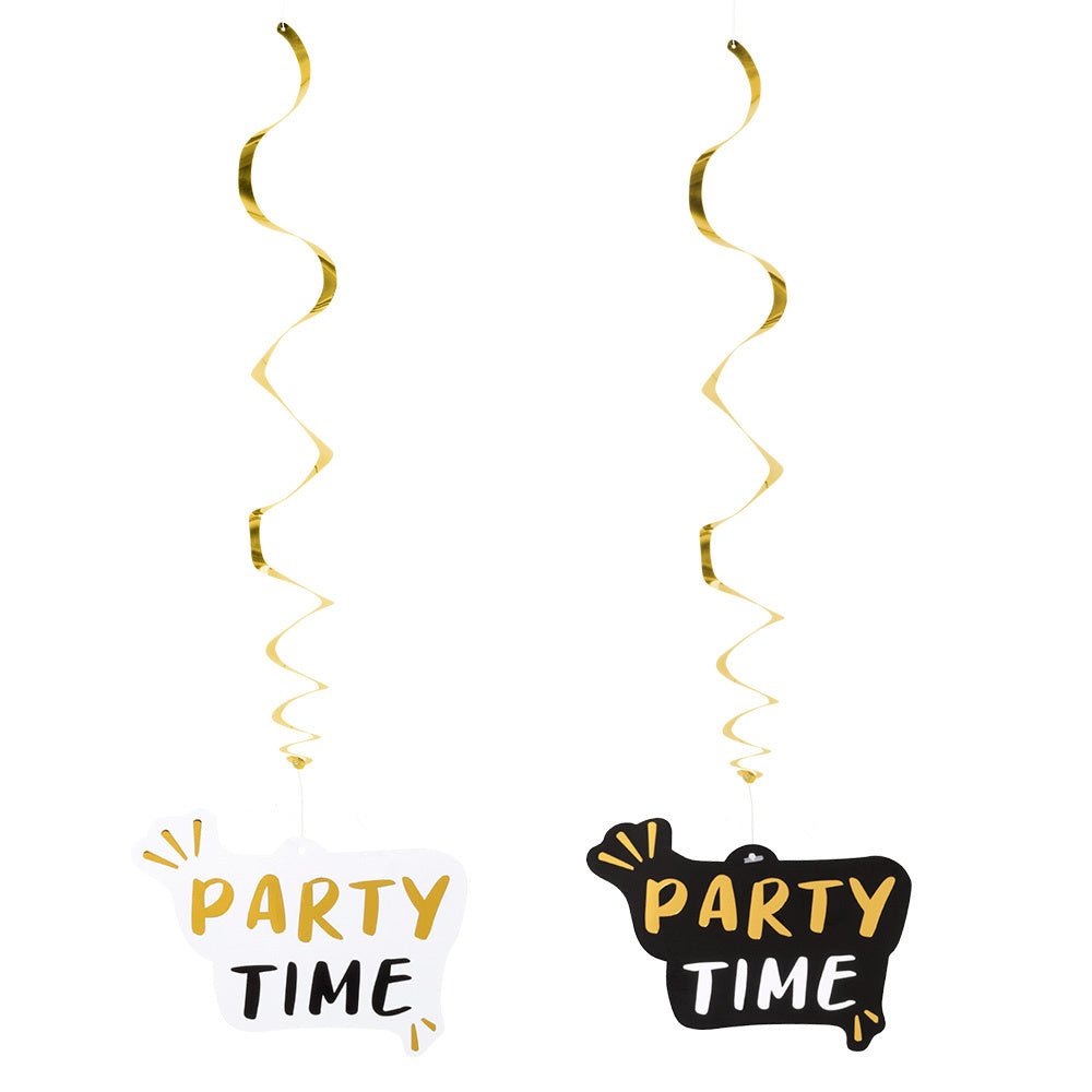 Beschreibung Bewertungen Über dieses Produkt Paketinhalt: Hängende Dekoration PartyzeitAnzahl: 2 StückGröße: 85 cmFarbe: gold/schwarz/weiß (beidseitig bedruckt)Material:Papier Trustpilot