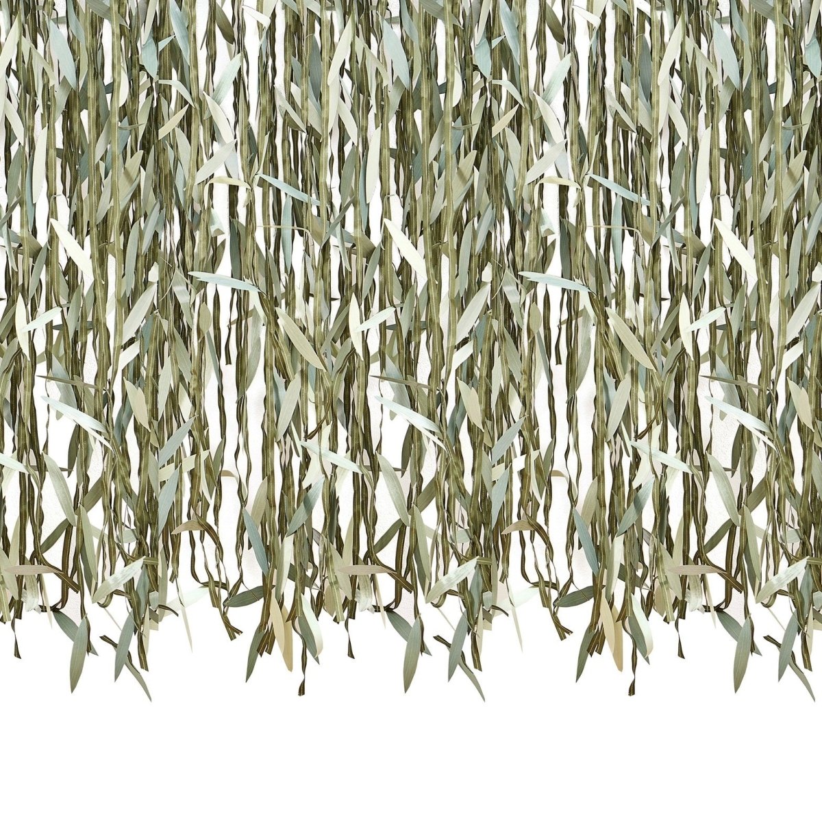 Nimm eine Schnur und befestige sie mit den Enden an einer Wand oder einem stabilen Möbelstück. Schneide die Weide auf die gewünschte Länge und lege sie über die Schnur, um den perfekten botanischen Hintergrund in der von dir gewählten Breite und Höhe zu schaffen.