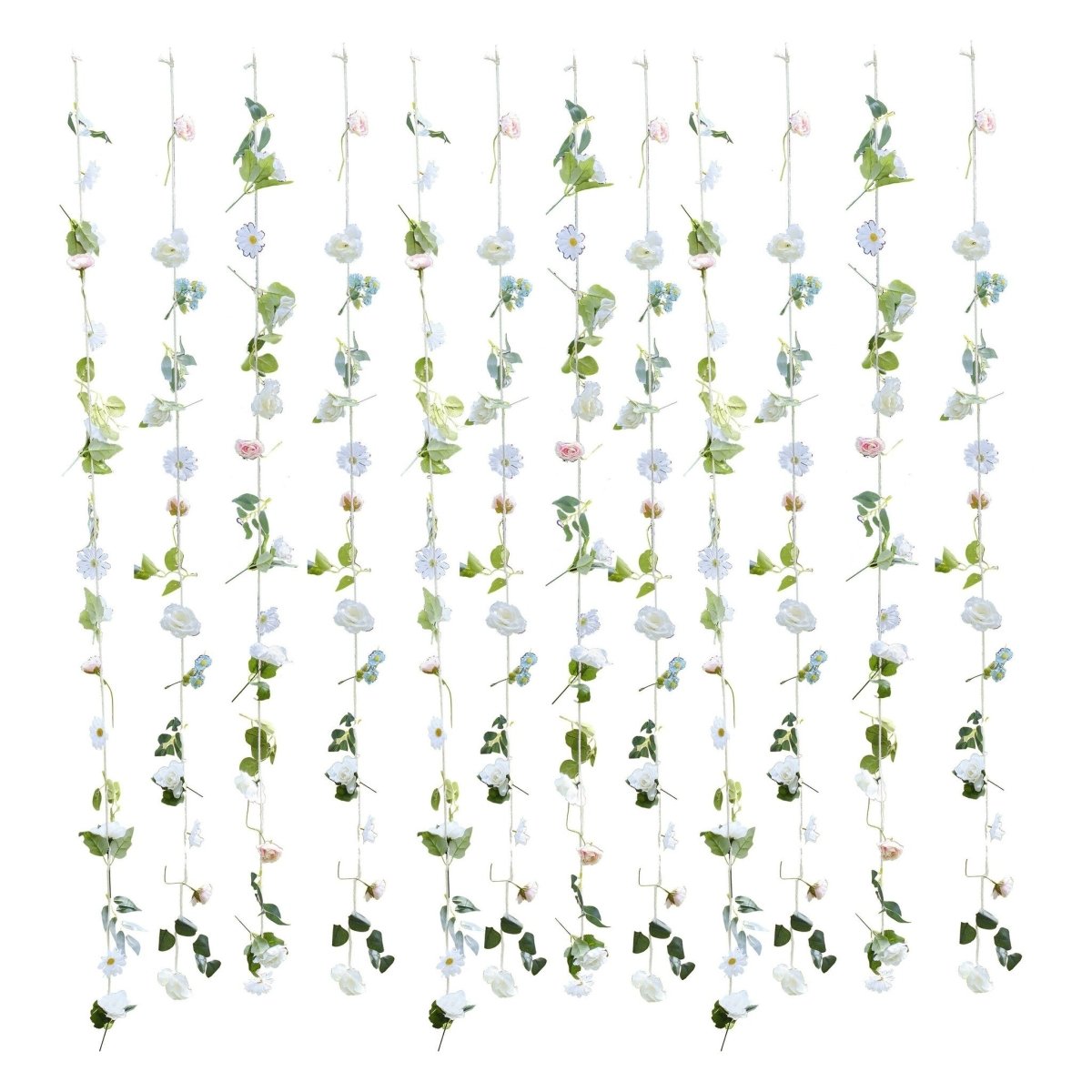 Dieser schöne Blumenvorhang enthält: 12 x 1,8 m Kunstblumenstränge an einer Schnur.