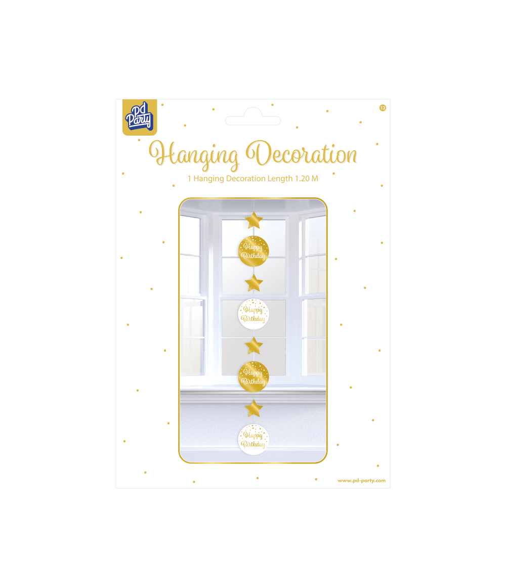 Hängende Dekoration Happy Birthday Gold Weiß 20,5cm
