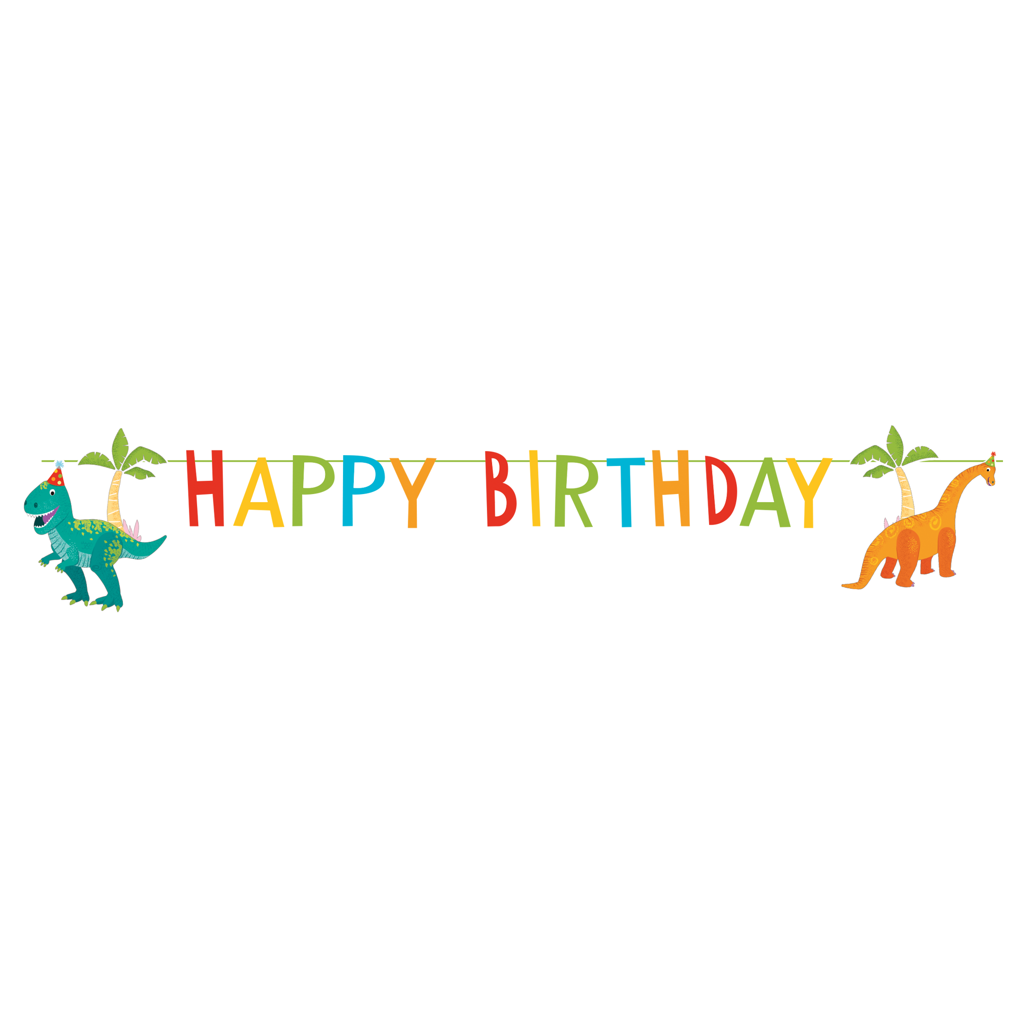 Feiere einen Geburtstag im Dinosaurier-Stil mit dieser fröhlichen Buchstabengirlande "Happy Birthday". Eine lustige Dekoration für jede Dinosaurier-Party.